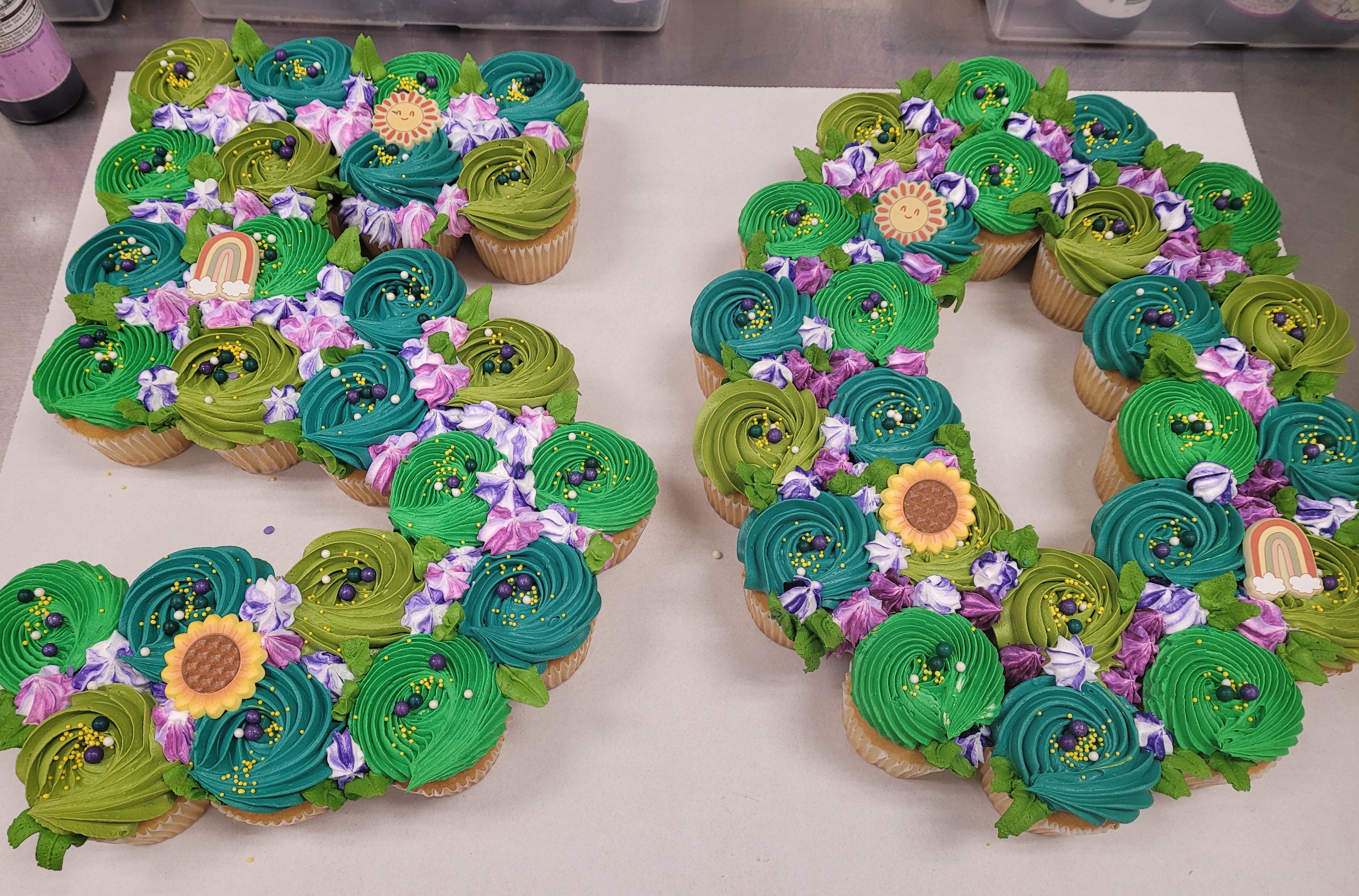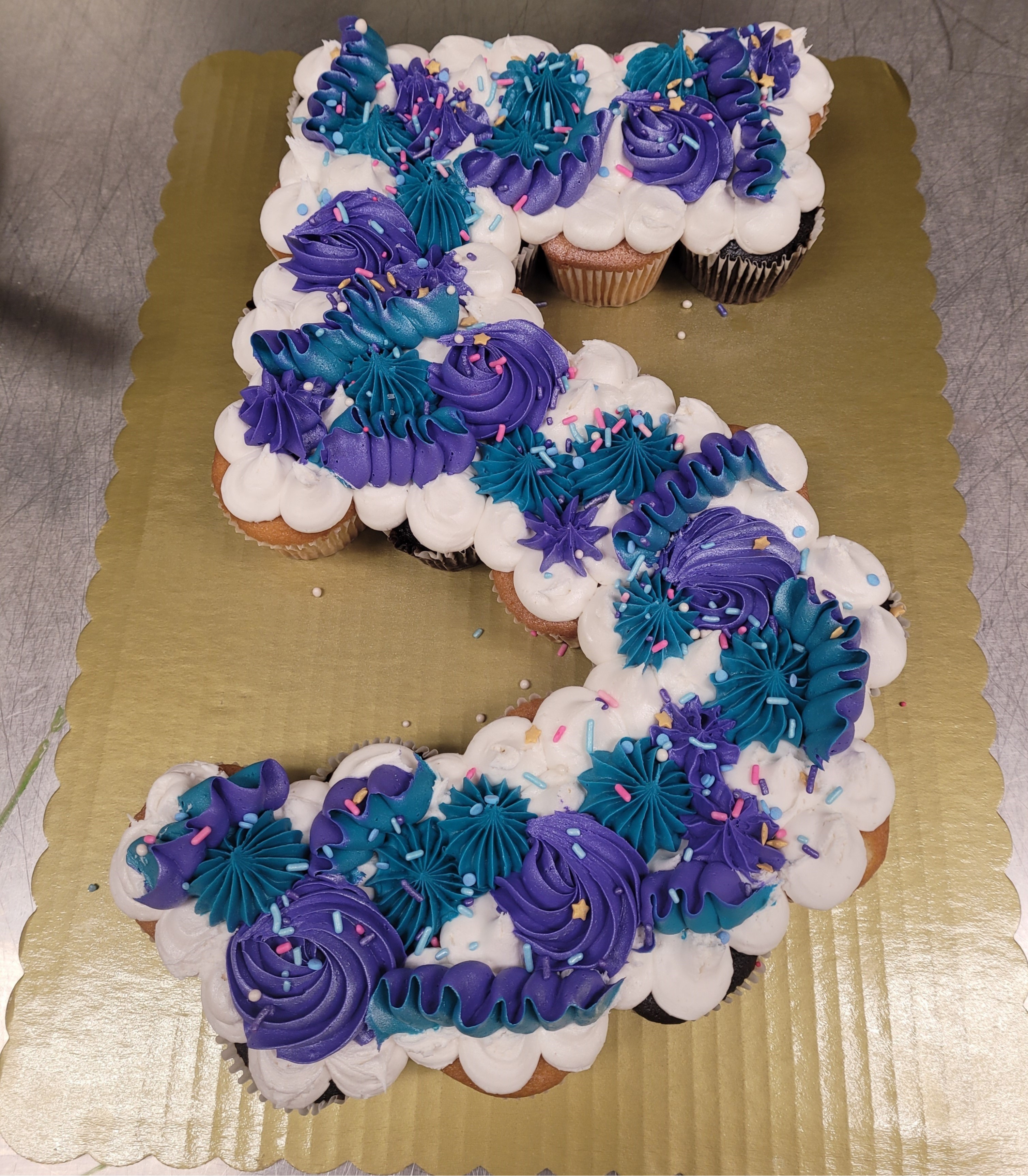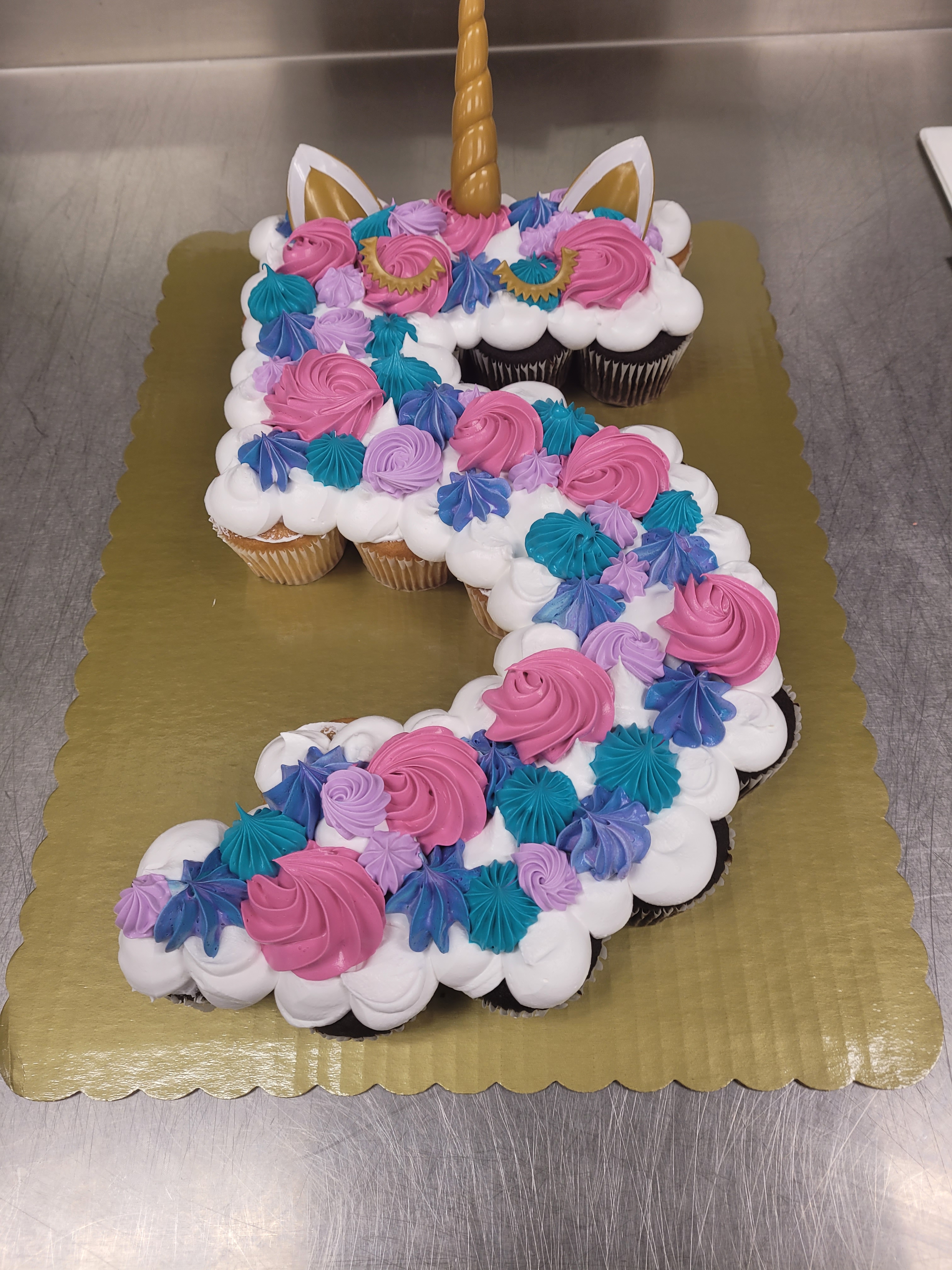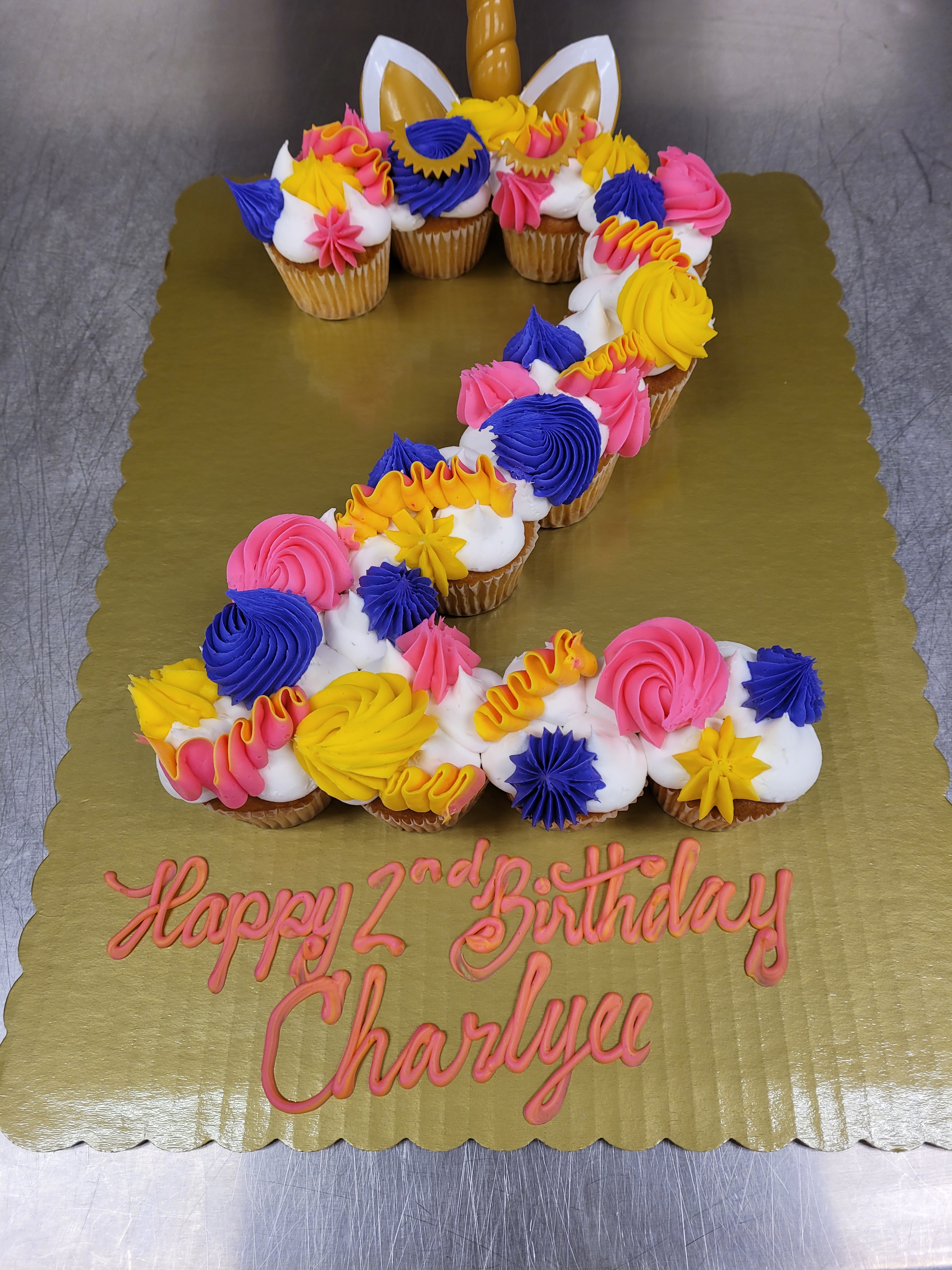 Otherwise known as Cupcake Cakes. They serve as a practical addition to any event, be it a birthday celebration, wedding, or corporate gathering. With numerous customization options available, you can choose the layout—be it a shape, number, or letter—that perfectly complements your theme or occasion. Since standard platters typically require two dozen cupcakes, you have the opportunity to select a different flavor per dozen, giving your guests an exciting variety that caters to diverse taste preferences. As there’s no need for slicing, these cakes are a popular option for kids’ parties; just grab, go, and carry on with the festivities!